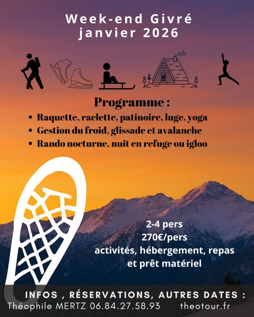 Belle expérience de sortie nocturne en raquettes avec un petit groupe en toute sécurité, sensations différentes nuit/jour; Théo est très attentionné, a un oeil sur tout; à recommander