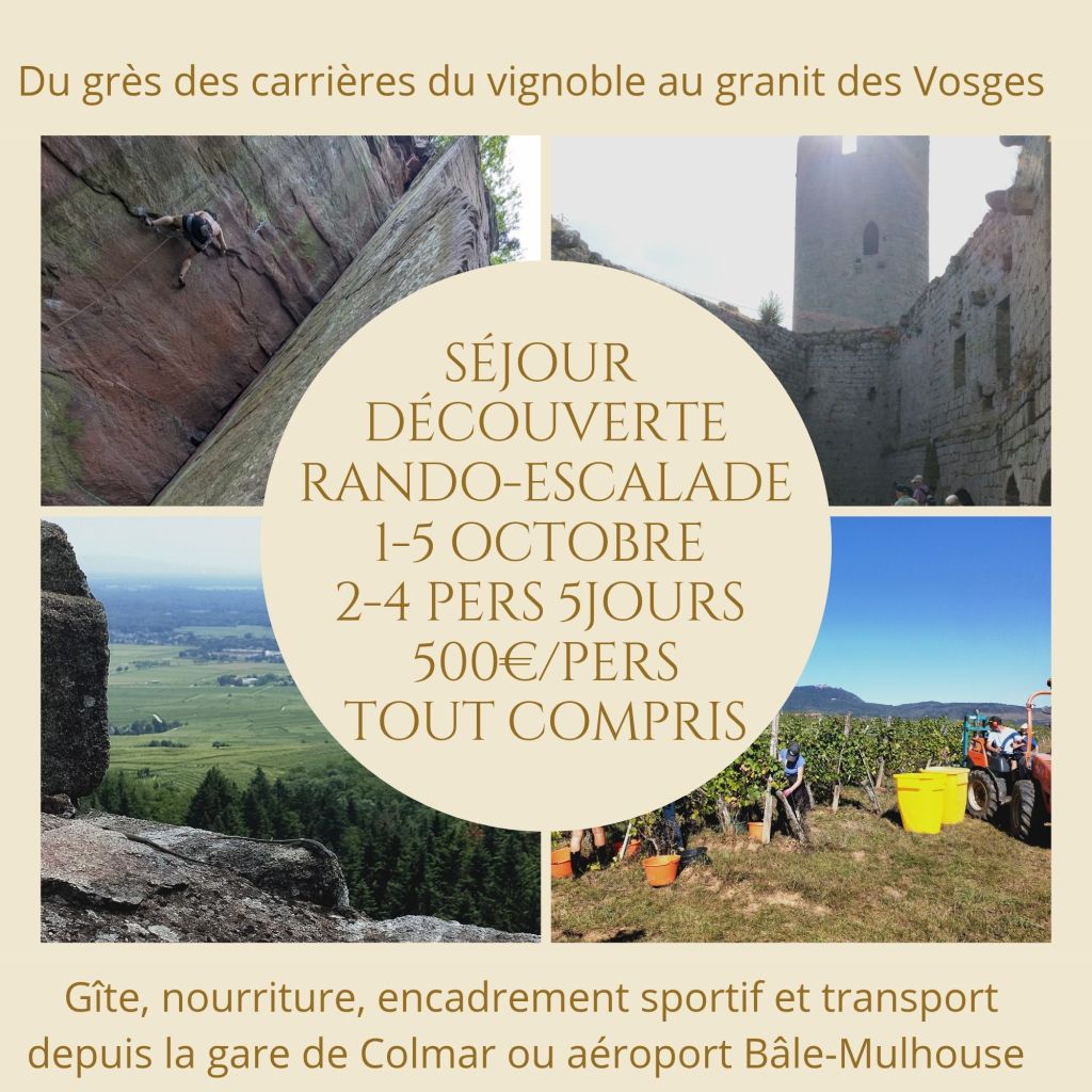 Activités : randonnées et yoga journalier et 3 demi-journées escalade.