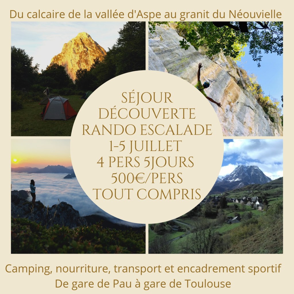Matériel : Prends ton baudrier, casque, chausson d’escalade, chaussures de marche. Pense à mettre tes lunettes de soleil, crème solaire et bonne humeur dans ton sac à dos 😜