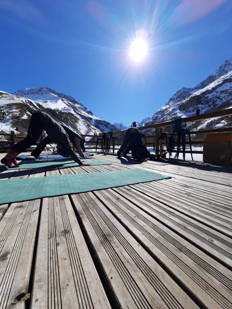 L’hiver une telle pratique est également possible, pensez à vous couvrir chaudement. Les rayon du soleil nous réchauffe la peau et la boisson chaude nous réchauffe le coeur. Le plus souvent l’hiver, une animation yoga posturale est proposé sur la terasse du gîte du pas de l’ane pendant les vacances scolaire, voir le planning des vacances dans sur la page de mes séjours. A la belle saison, une animation yoga peut être proposé en début de randonnée pour s’échauffer, en mileu pour accompagner la sieste ou encore à la fin pour proposer un retour au calme.